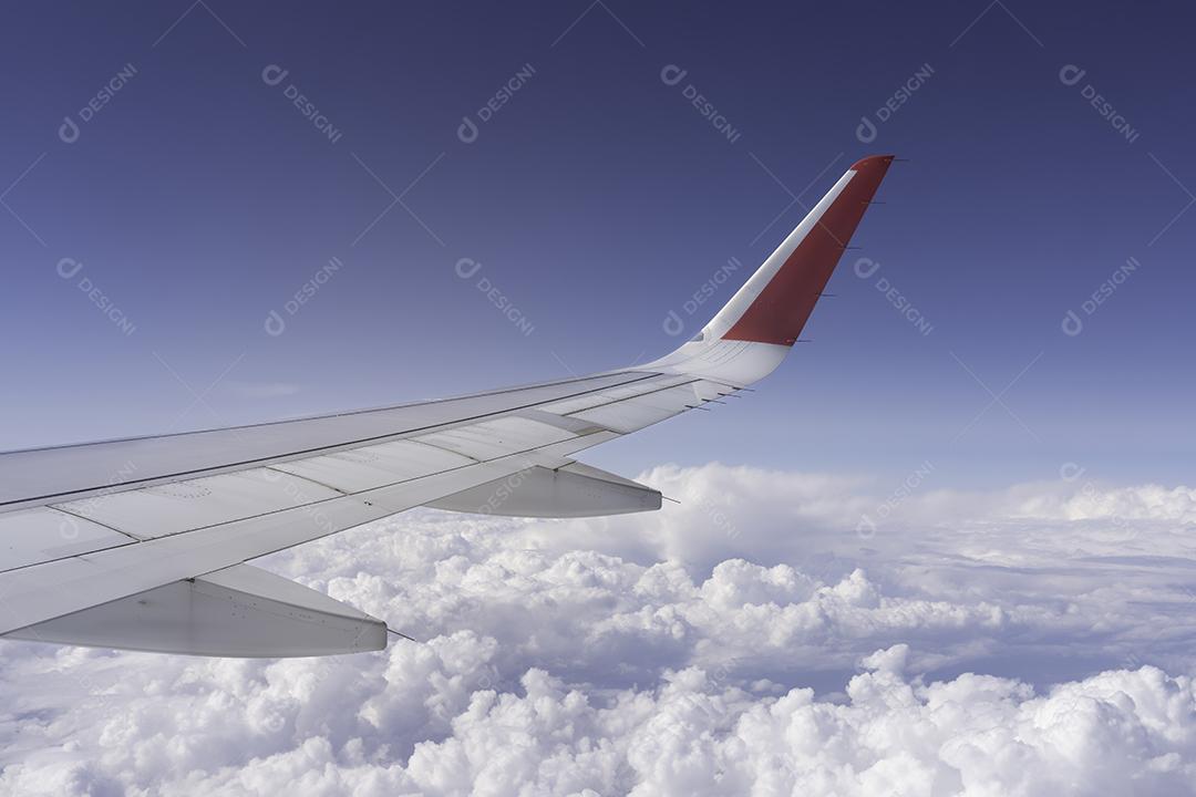 Vista de Nuvens Brancas no Céu da Janela de Um Avião Sobre a Asa Im...