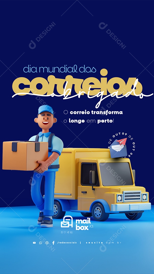 Story Dia Mundial dos Correios 09 de Outubro Obrigado Social Media PSD Editável