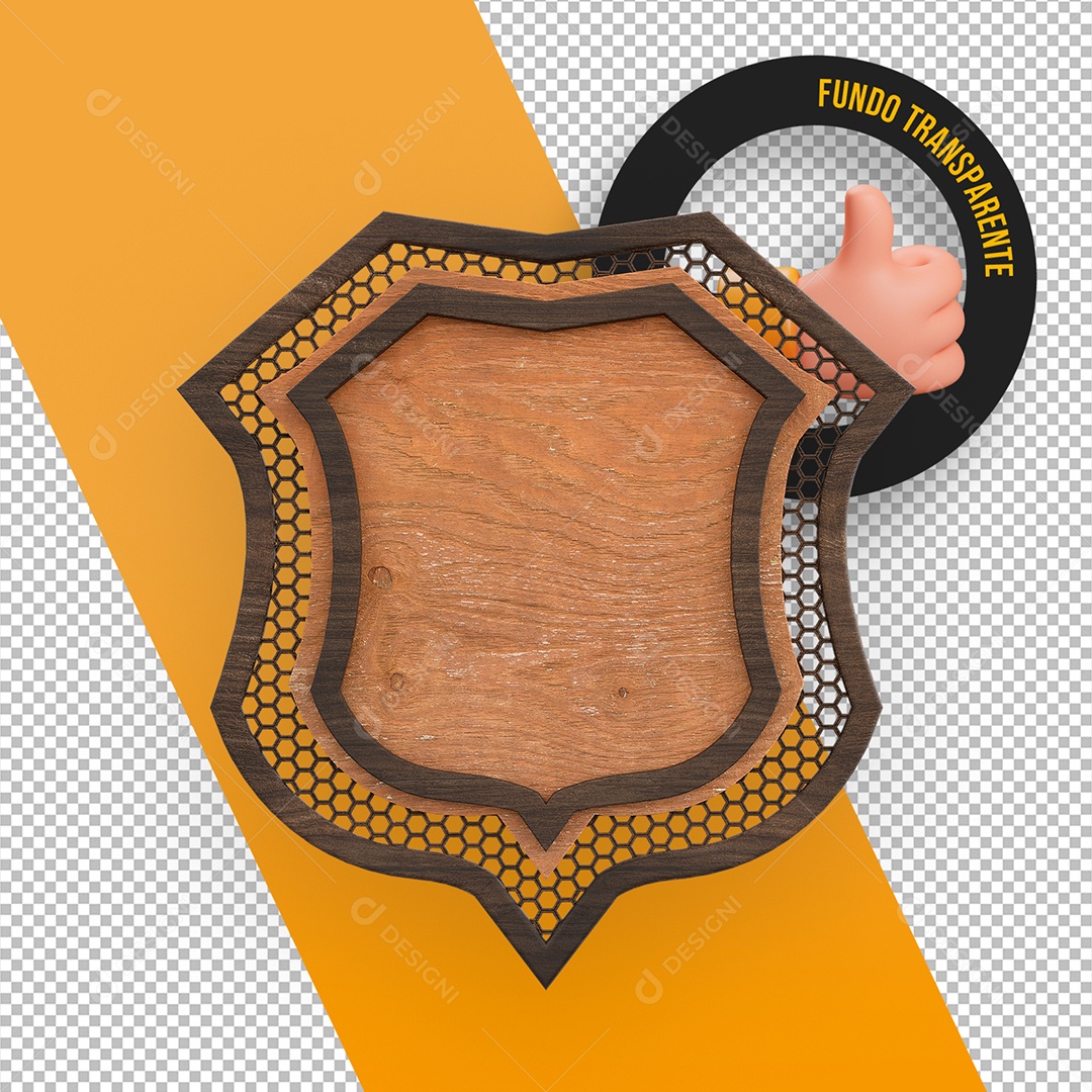 Painel de Madeira Metal e Grades em Forma de Emblema Elemento 3D para Composição PSD