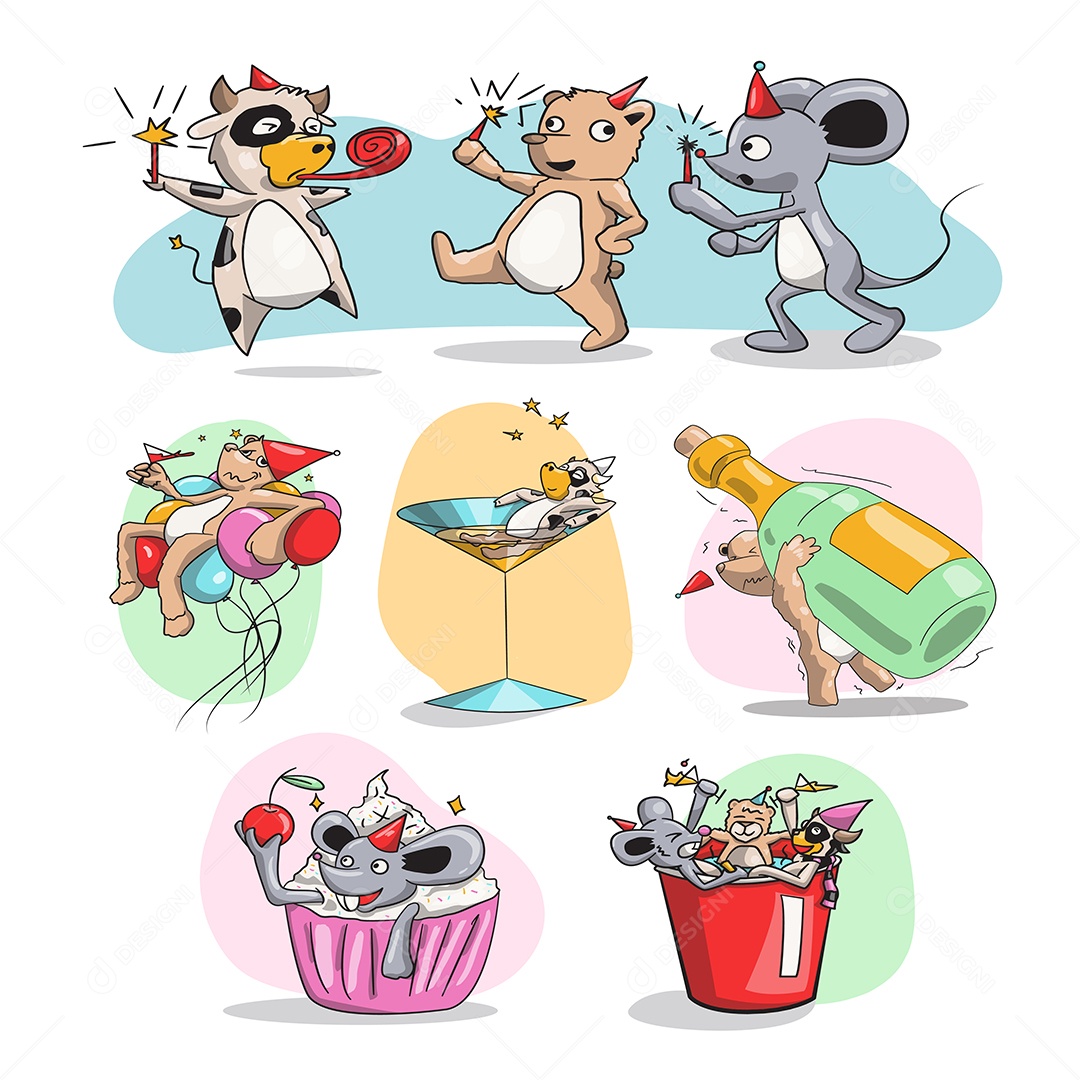 Grande Pacote de Elementos Vetoriais para Decoração de Festas de An...