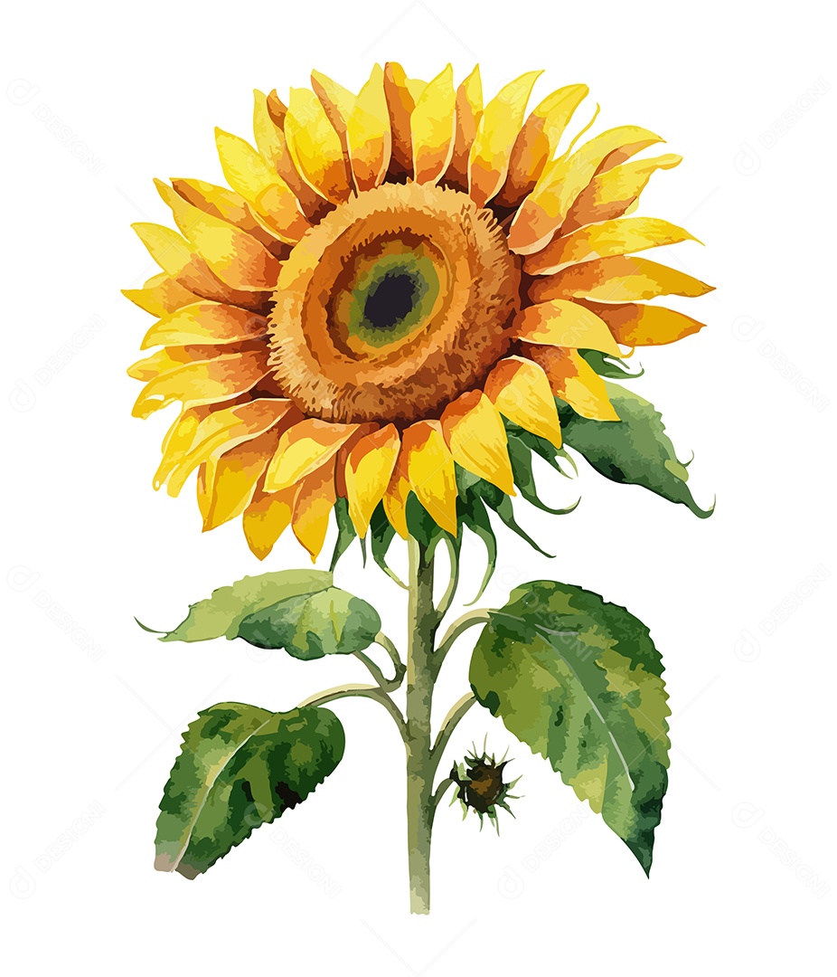 Flor De Girassol Desenho De Aquarela Desenhada Vetor EPS