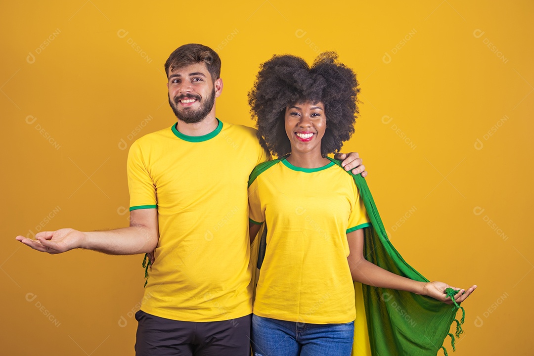 Casal brasileiro segurando a bandeira do Brasil