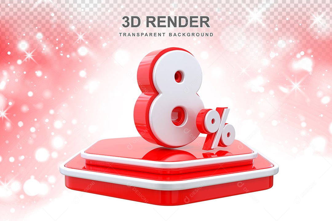 Número 3D 8% Vermelho Elemento Para Composição PSD