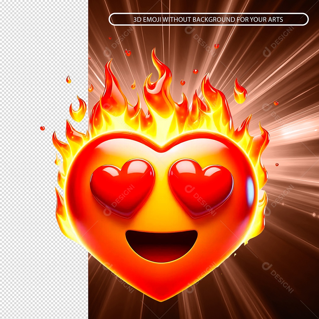 Emoji Coração Em Chamas Elemento 3D para Composição PSD