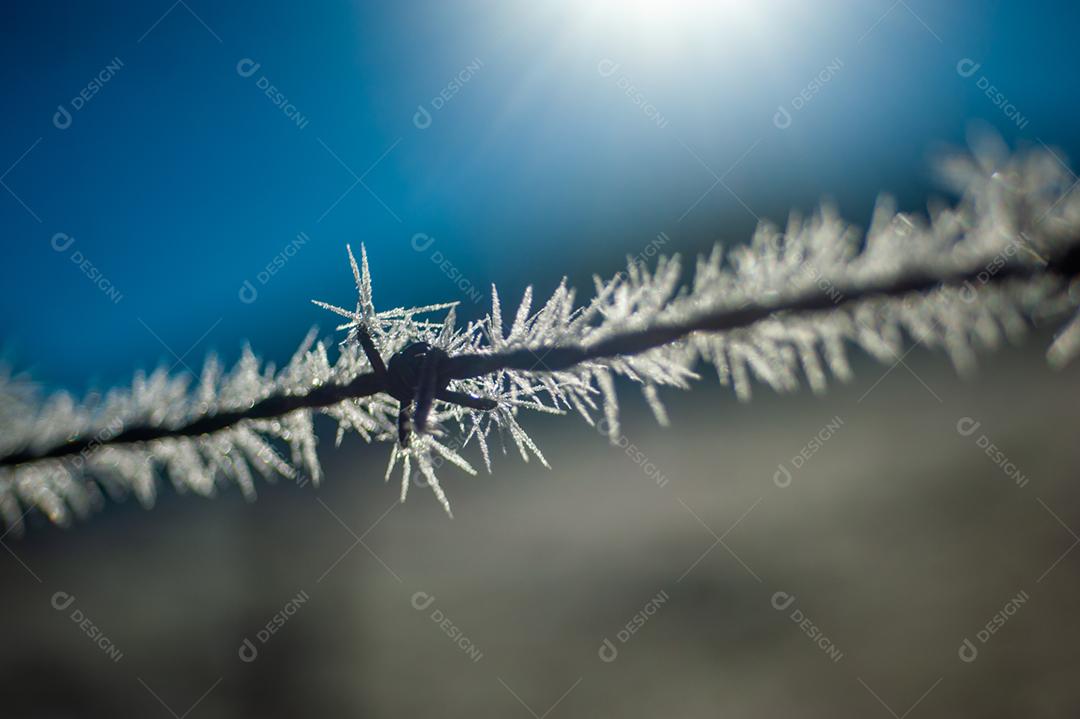 Arame farpado fazenda por do sol céu azul
