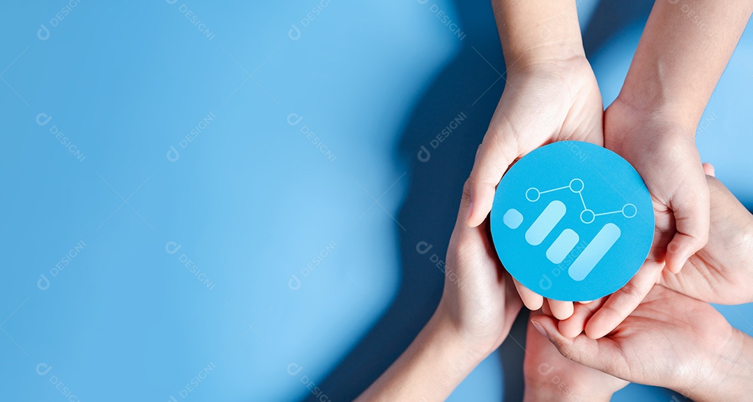Mãos segurando o crescimento do gráfico com liderança de desenvolvi...
