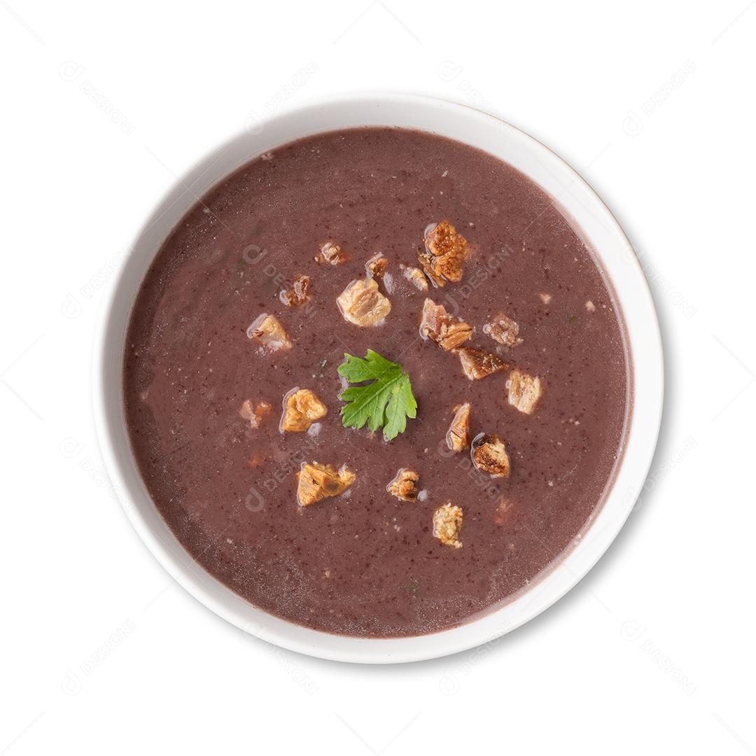 Sopa de feijão preto em uma tigela isolada sobre fundo branco