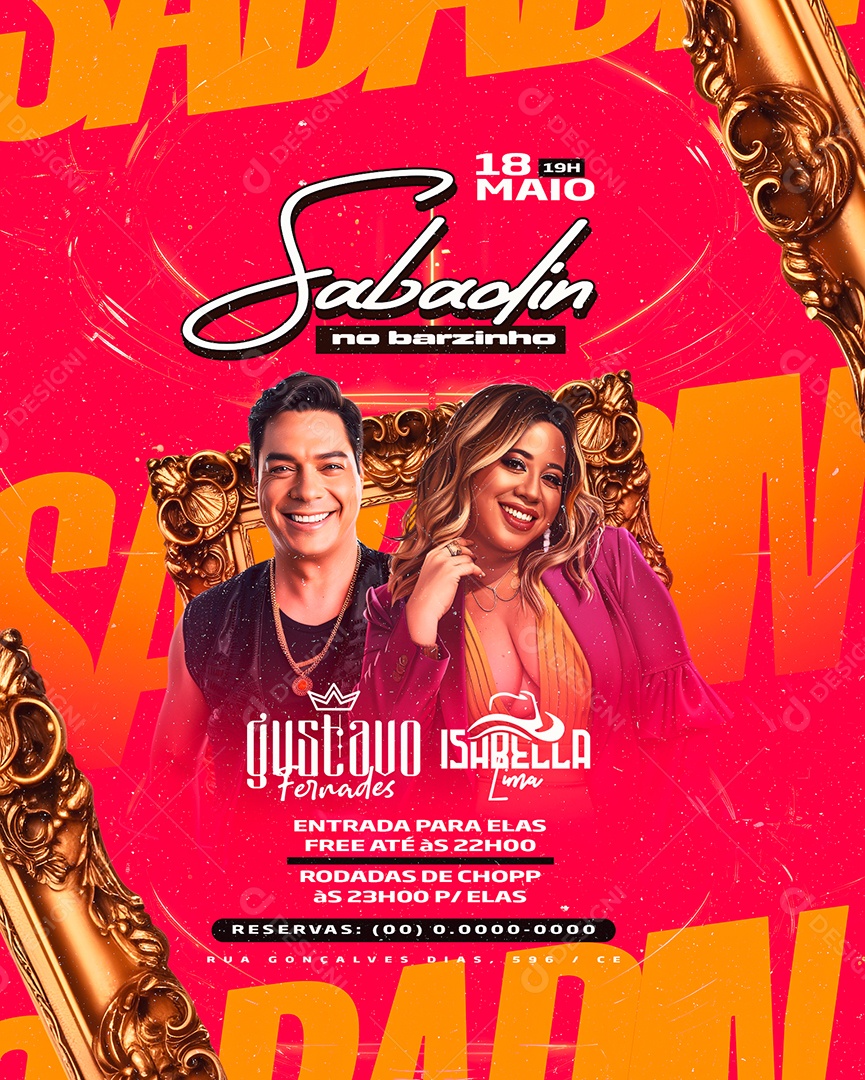 Flyer Sabadin no Barzinho Gustavo Fernades Isabella Lima Social Media PSD Editável